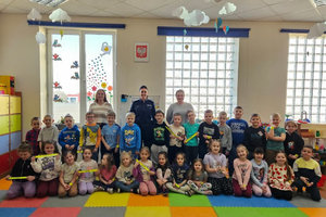 Spotkanie było również okazją do zapoznania dzieci z pracą policjanta. Funkcjonariuszka opowiedziała o specyfice swojej służby i pokazała sprzęt policyjny. Na zakończenie wizyty, dzieci otrzymały elementy odblaskowe, aby zwiększyć swoje bezpieczeństwo podczas spacerów.